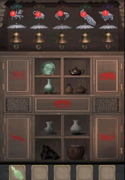 7、找到【双鱼风铃】挂到柜子上,按照下图的顺序摇动风铃得到【算珠】。