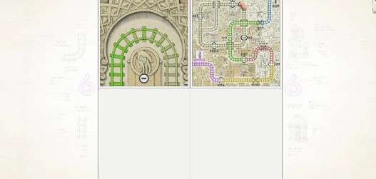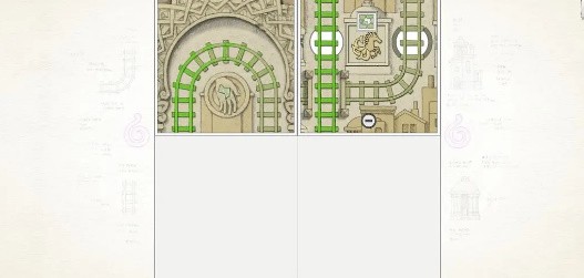 3、接着我们使用图二向着图一向左边移动两次,将柱子放大两次,再将图二放到图中的绿色车轨上,将图二移动到图三,火车就能够驾驶到紫色车轨上了。