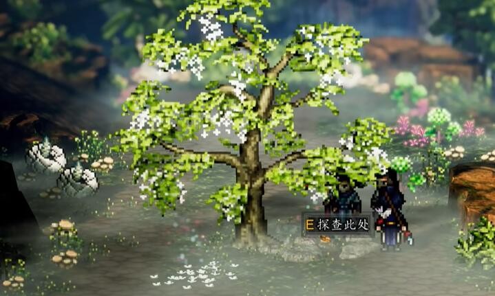 3、向右移动找到槐树,在这里有一个位置可以进行探查。