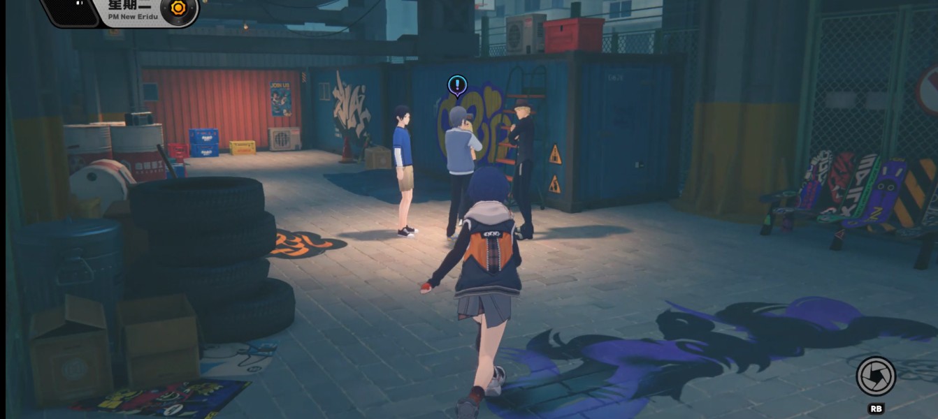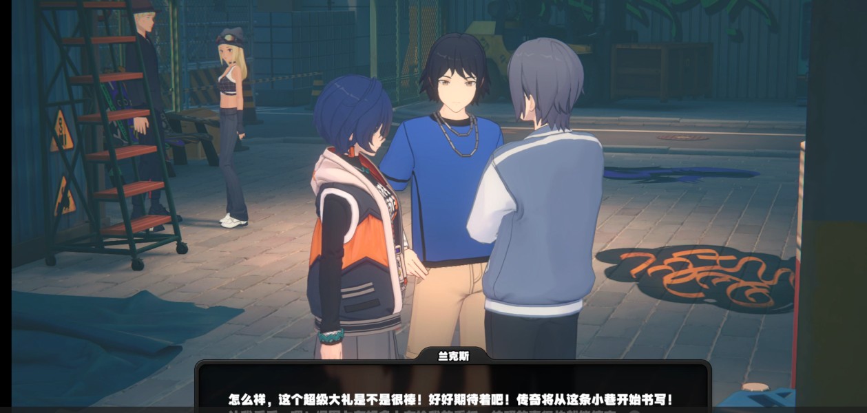 2、在对话中了解到,桑特想在我们车库的涂鸦上署上他们社团斑斓骑士团的名,他说了他们骑士团目前遇到了很大的危机,可能在涂鸦决斗上失败。