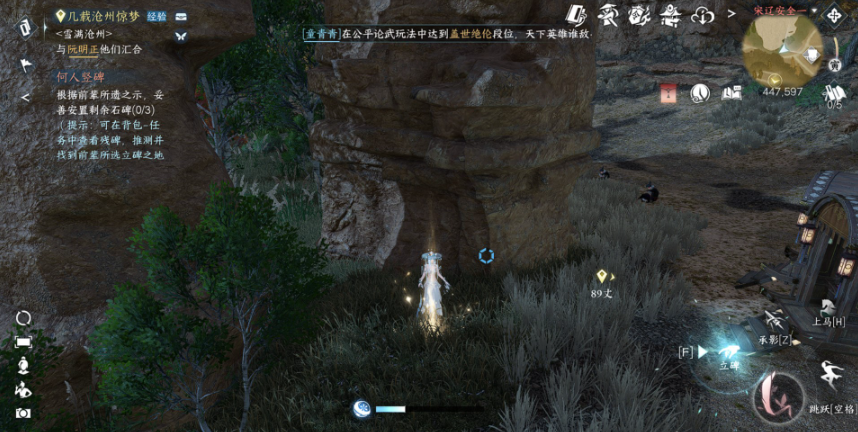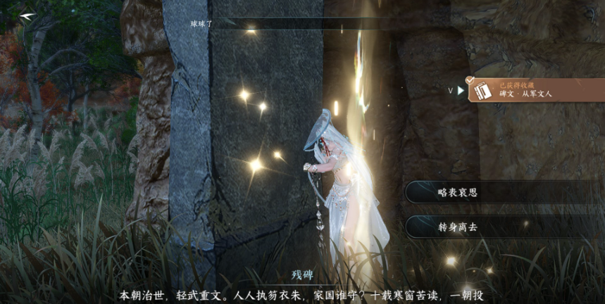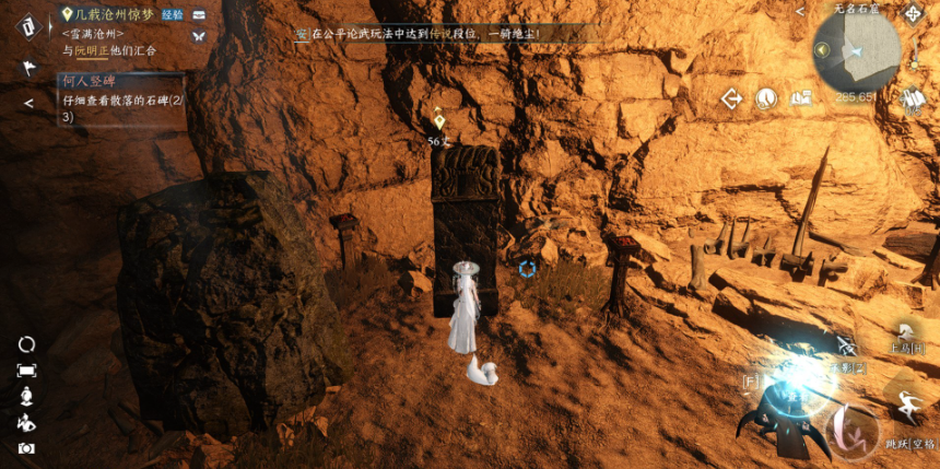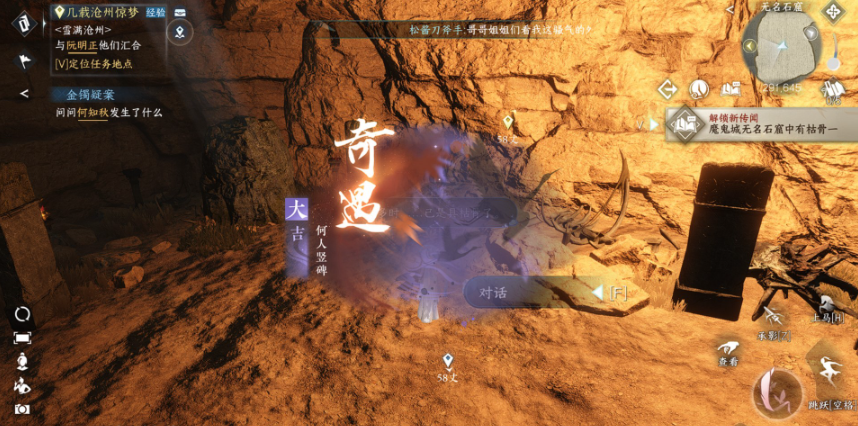 一直往前走,查看打坐的人,触发奇遇【何人竖碑】。
