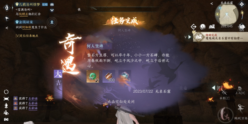 给无名前辈立碑,完成奇遇【何人立碑】。