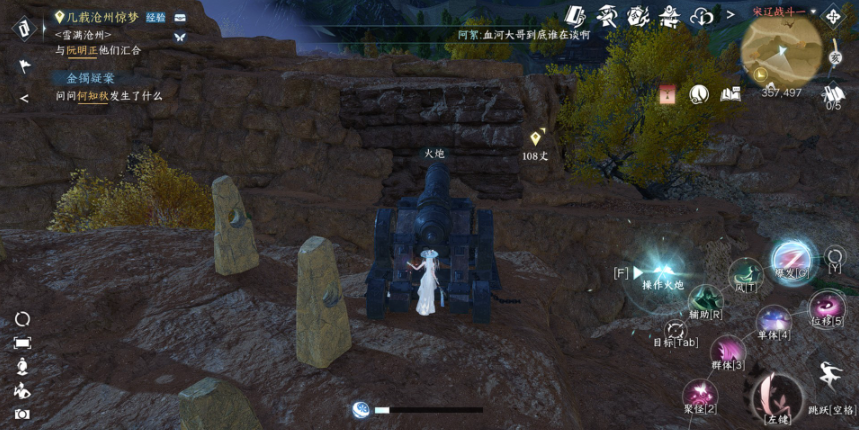 先到宋辽边境(328,540)附近触发奇遇传闻(已经看过石碑的不用了),然后来到宋辽边境(357,497),选择操作火炮。