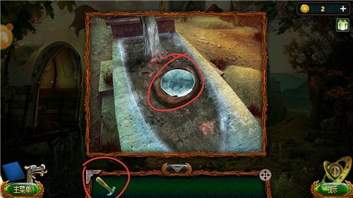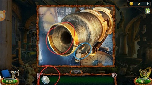 10、点右侧架子部分,把三个铁球放在勾子上,左侧升起一个平台,获得三角铁片。
