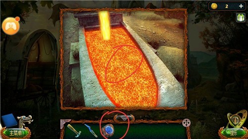 19、返回上一步,用铁片切断右侧绳索,点一下左侧门把,即可通关。