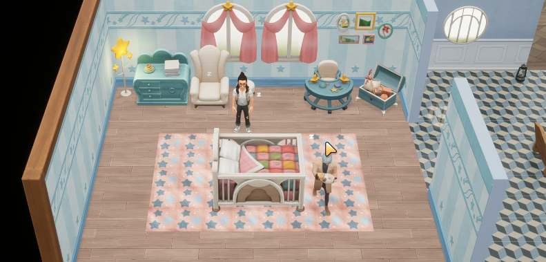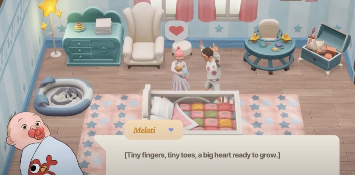 3、目前小孩只能躺床上看伴侣抱,暂时还没有开放更多的功能玩法,大家可以期待一下后续的更新。
