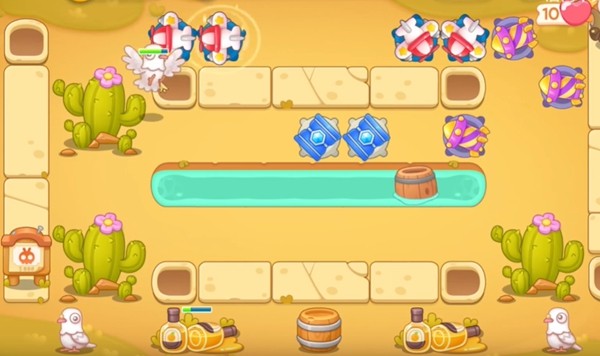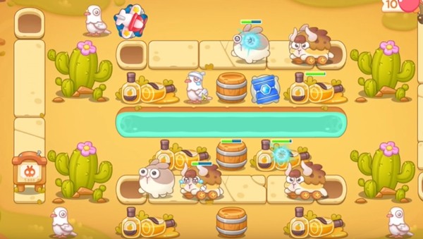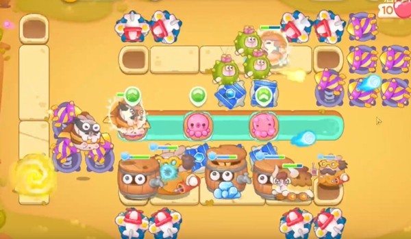在开局的时候第一排放上一个飞机,第二排是一个冰锥兔子和障碍物一起攻击。