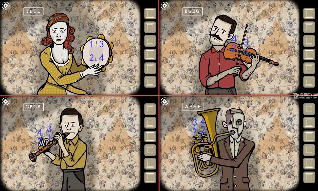 3、根据乐谱的提示,按顺序点击每个人的乐器,四个人开始一起合奏。