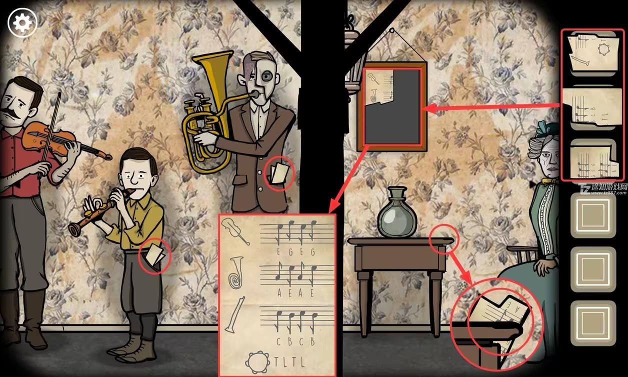 锈湖根源第19关怎么过?锈湖根源讲述了范德布姆家族三代人的故事,也就是锈湖整个系列的开始。这一关我们首先需要在莱纳德和阿尔伯特的口袋里、桌子后侧获得三张乐谱的纸。那么接下来小编就为各位小伙伴带来锈湖根源第19关家族乐队图文攻略。