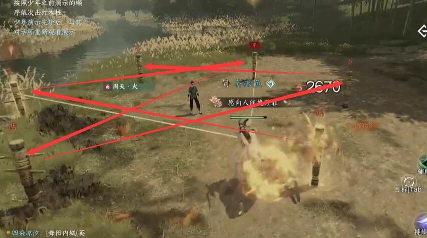 逆水寒手游击打木桩顺序打法一览:
