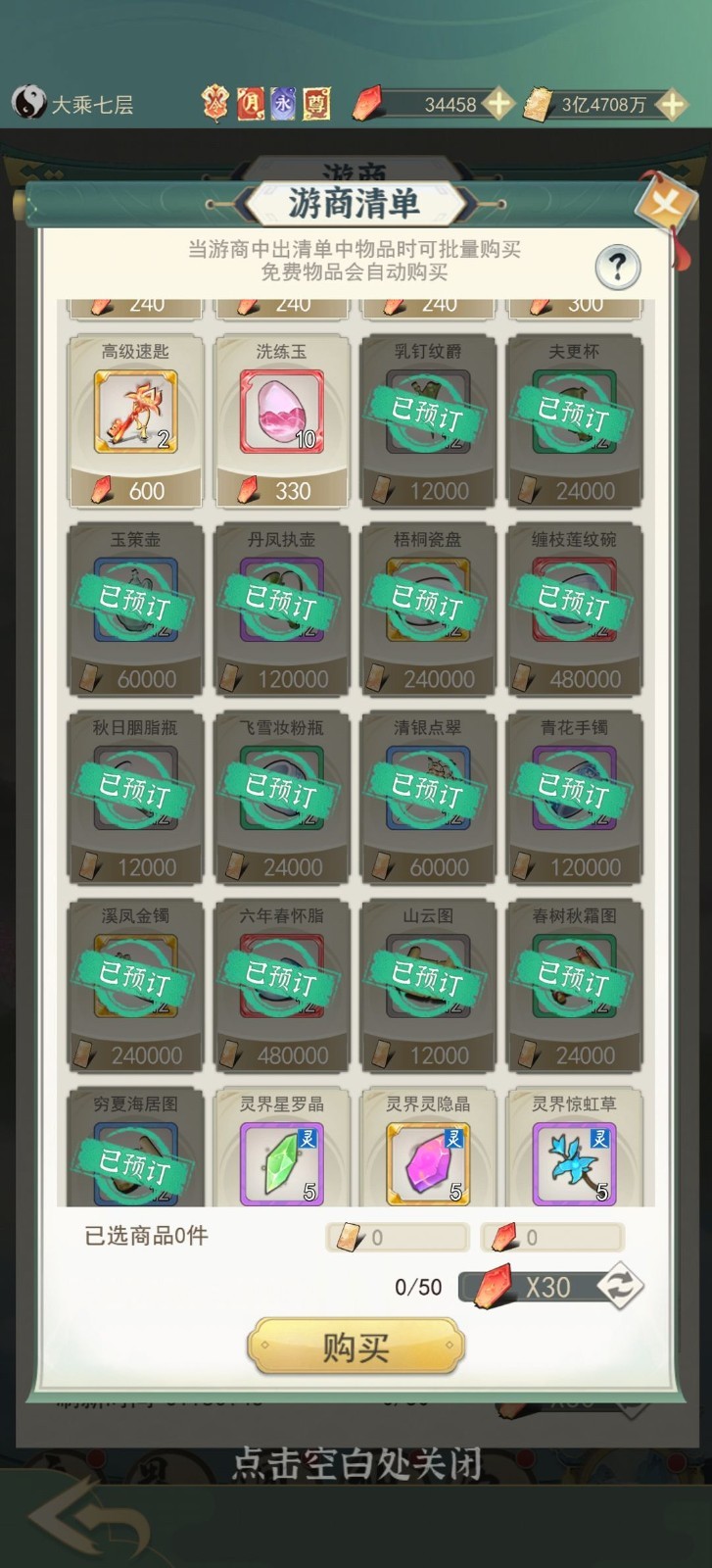③在坊市买:所有丹药和人间惊虹草,人间含有光草,四把钥匙,四种徽章和书页。五行灵精买满,灵界可以炼丹。前期充满了虚空石。
