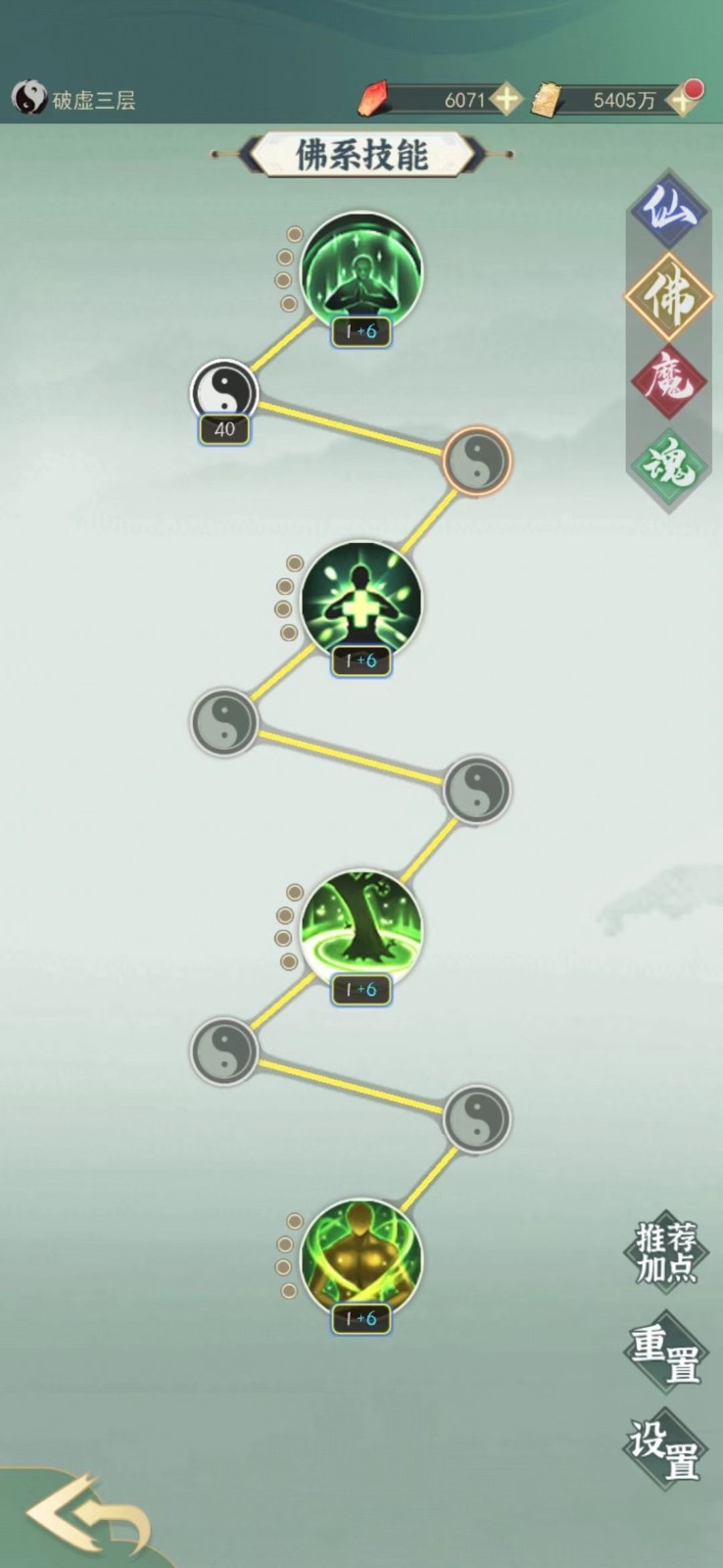 成功的练气可以重置天赋,选择佛一佛二,剩下的优先生命点到40级。然后点三佛四佛。可以在筑基和金丹期完美度过。