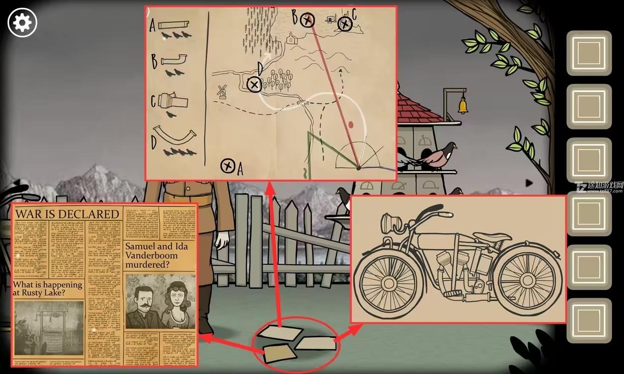 锈湖根源第22关怎么过?锈湖根源讲述了范德布姆家族三代人的故事,也就是锈湖整个系列的开始。这一关我们首先需要点击地上的纸,左上角的是地图,上面注明了摩托车零件的位置。那么接下来小编就为各位小伙伴带来锈湖根源第22关战争英雄图文攻略。