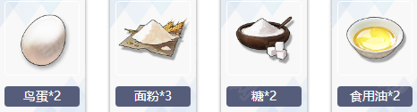 鸟蛋*2+面粉*3+糖*2+食用油*2