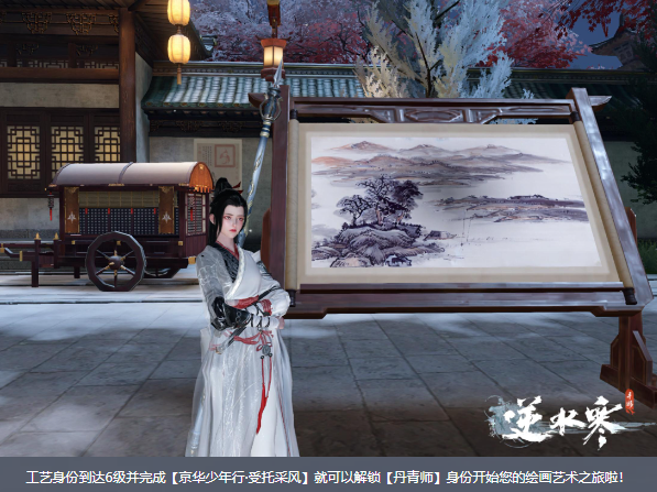 在亲眼目睹张择端完成画作后,您隐藏的绘画天赋被激活,成为了【丹青师】,尝试着亲手绘画,墨下生春。您的绘画作品可以在场景之中展示,供其他玩家欣赏。