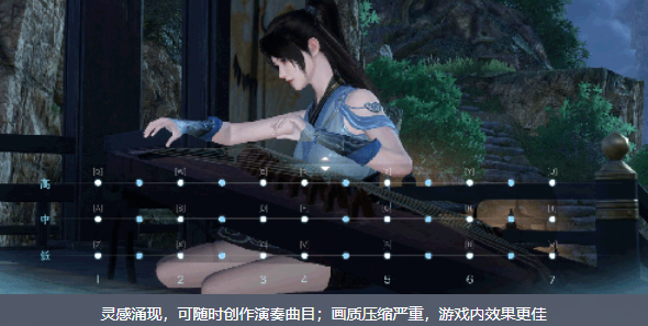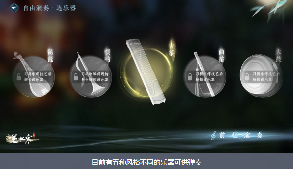 例如【演奏】身份中,作为乐坛新人,大家可以选择曲目,按照乐谱弹奏古筝进行练习;若您灵感大发,也可以随性弹奏,创作演奏属于自己的曲目。