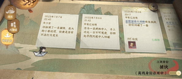 而若您选择了【捕快】身份,那就代表着您选择了体制这条道路,日常工作为走街串巷打听情报,处理民事纠纷,这就需要您拥有敏锐的洞察力,以及清晰的逻辑。偶尔需要抓抓小毛贼,所以平时一定要勤练轻功。