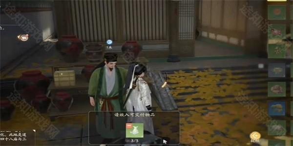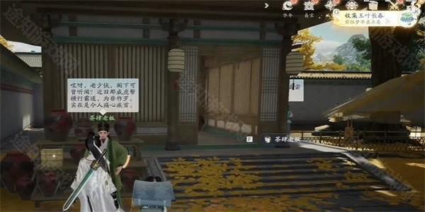 2、接着在庭院中找到NPC茶肆老板进行对话,了解任务详情。