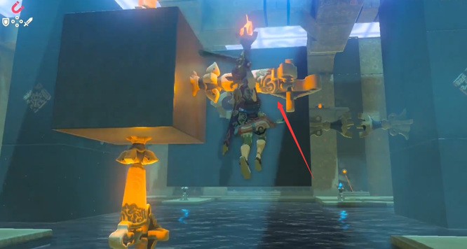 2、进入神庙后来到橘色灯机关位置。