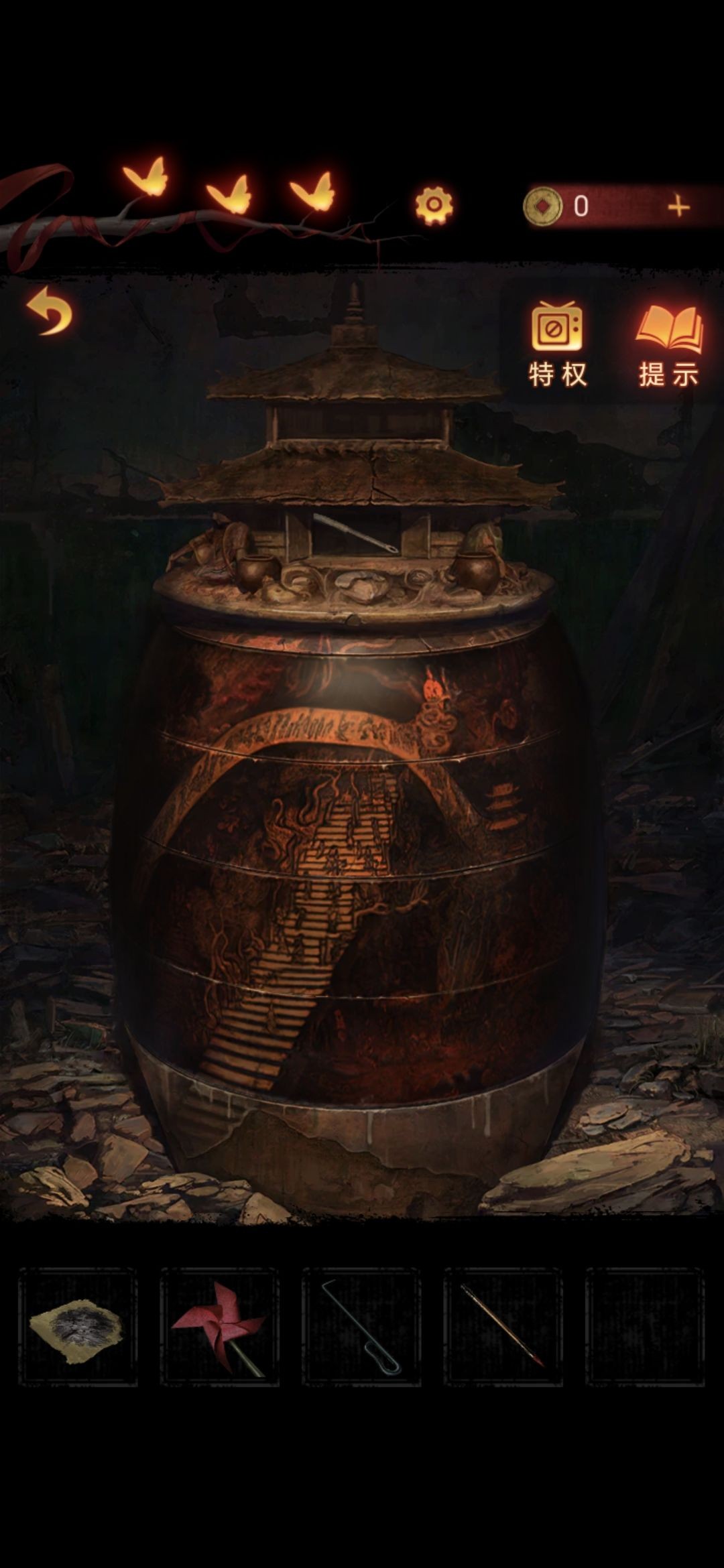 把房顶饰品给右下角的魂瓶装上,拼图,拼好后获得刀币