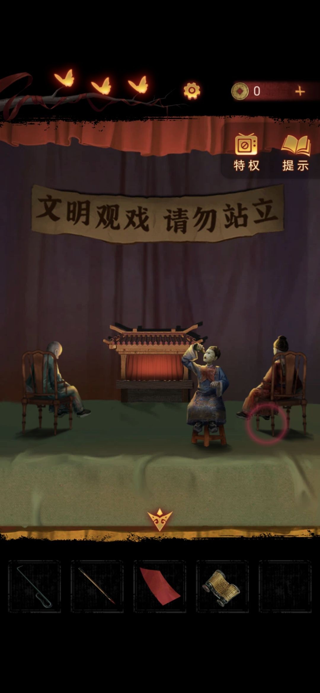 把椅子给红衣木偶,开始看戏,获得酒壶