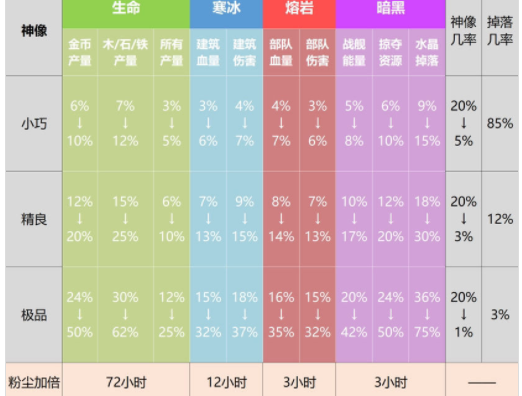 3、掠夺神像资源的重要性不用多言,掠夺神像可以让进攻玩家或者NPC所获得总资源的百分比加成。
