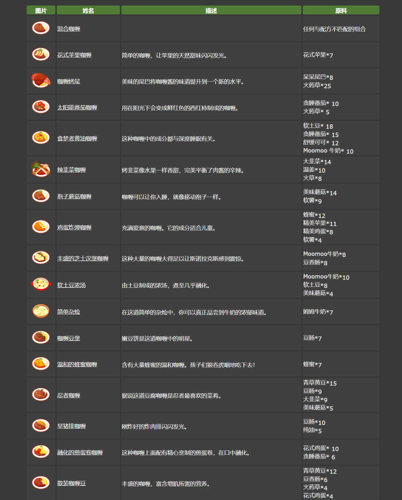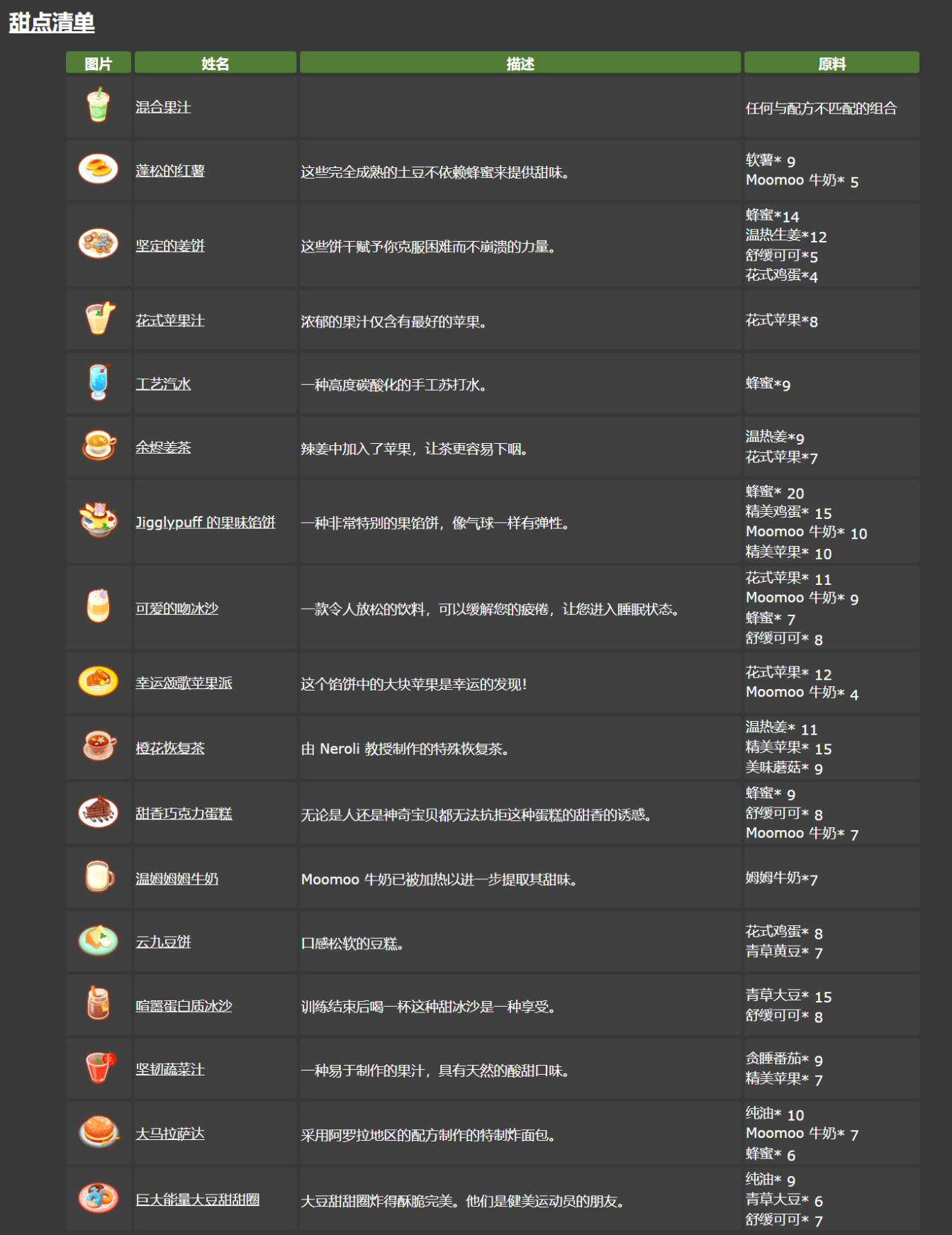 宝可梦Sleep全食谱(咖喱/沙拉/甜品)攻略