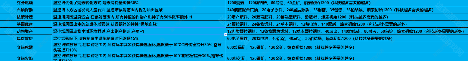 《七日世界》1.3雪国人生温控塔升级材料及效果汇总