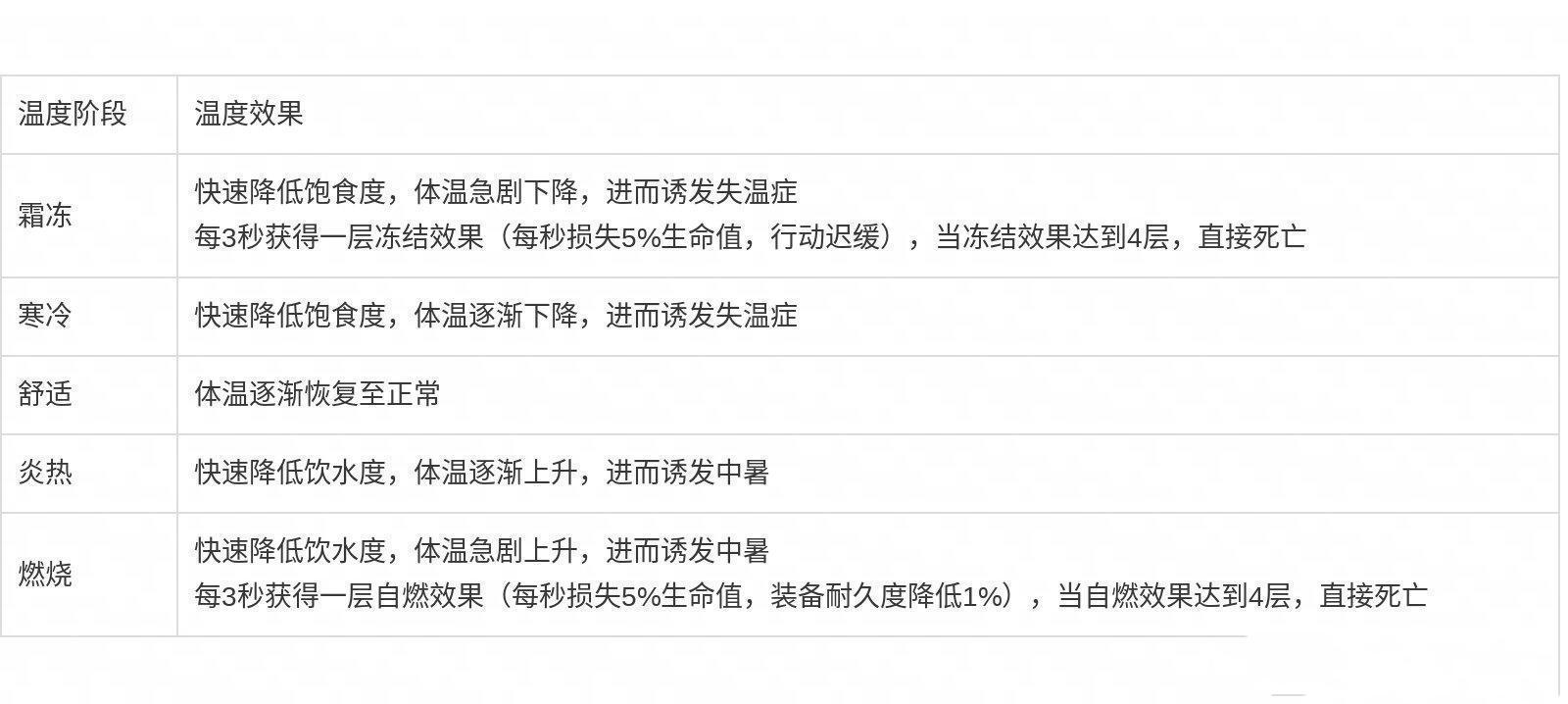答:过冷或过热会诱发疾病,严重会损失生命值和装备耐久