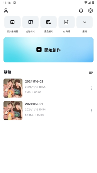 1、打开软件即可进行创作,也查看草稿、剪片、海报等;