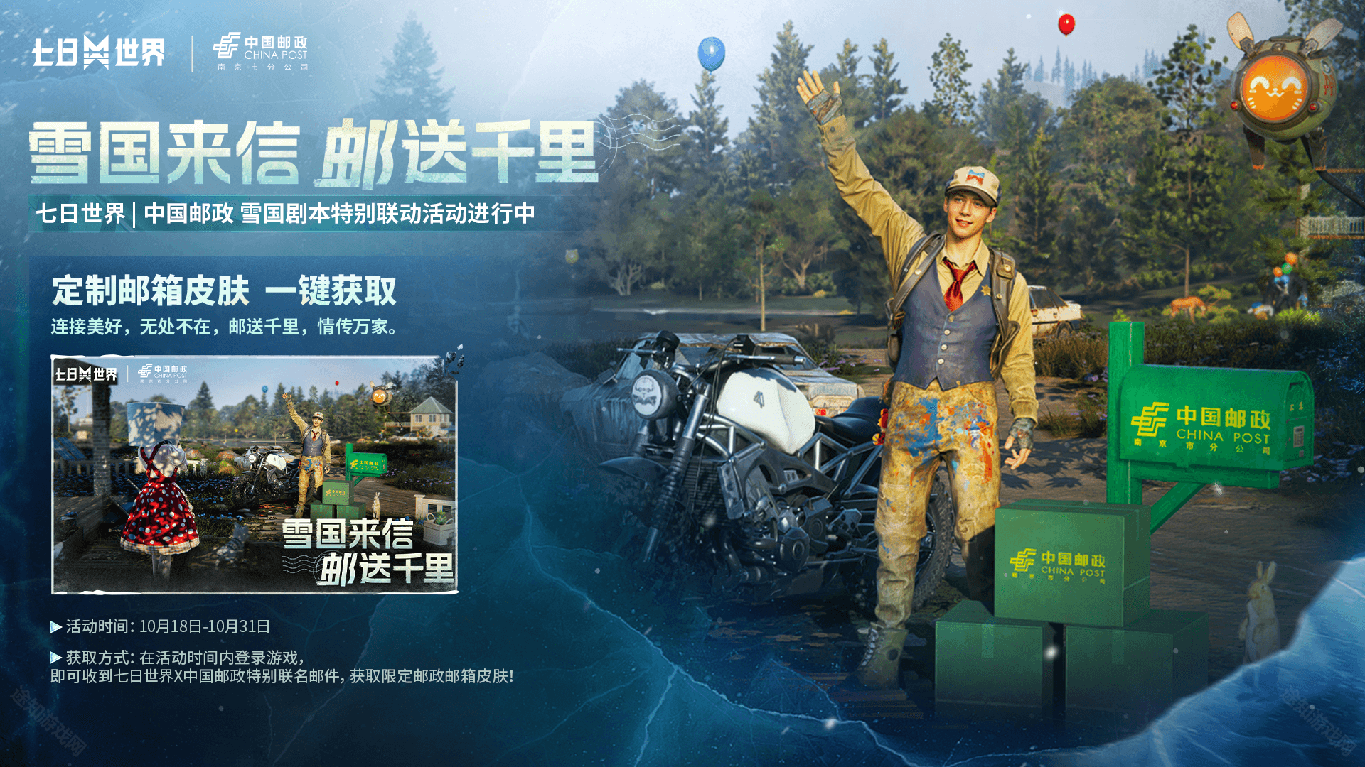 10月18日-10月31日,登陆游戏即可获取限定邮政游戏皮肤