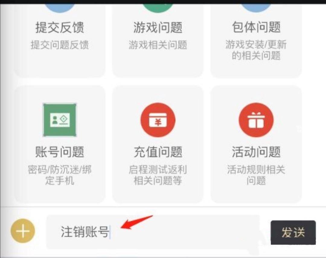 3、进入页面后,在对话框里输入【注销账号】,点击发送。