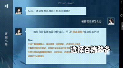 2:然后我们在对话框中输入装备误分解怎么办,然后客服会给你一个点击此处的链接,我们点击;