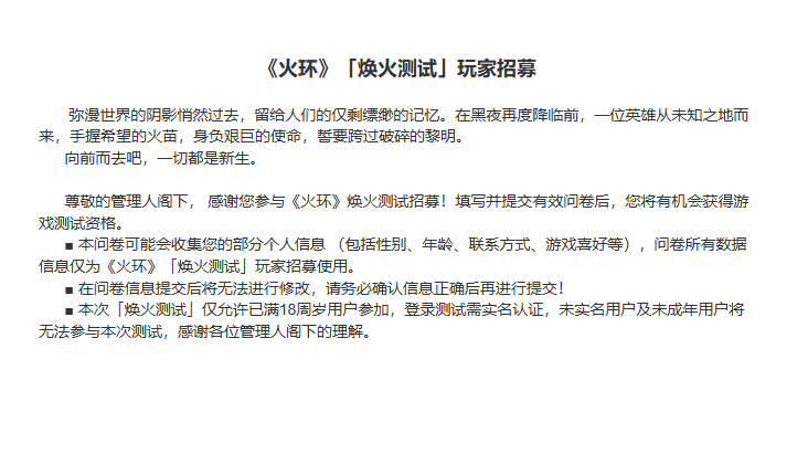 火环焕火测试资格怎么获得?时隔数月游戏《火环》终于再次有了动静,本次游戏将开启新一轮焕火测试,很多小伙伴已经迫不及待地想参与这次测试,那么我们怎样可以参加这次测试呢?接下来就和小编一起看看《火环》焕火测试资格获取方法吧。