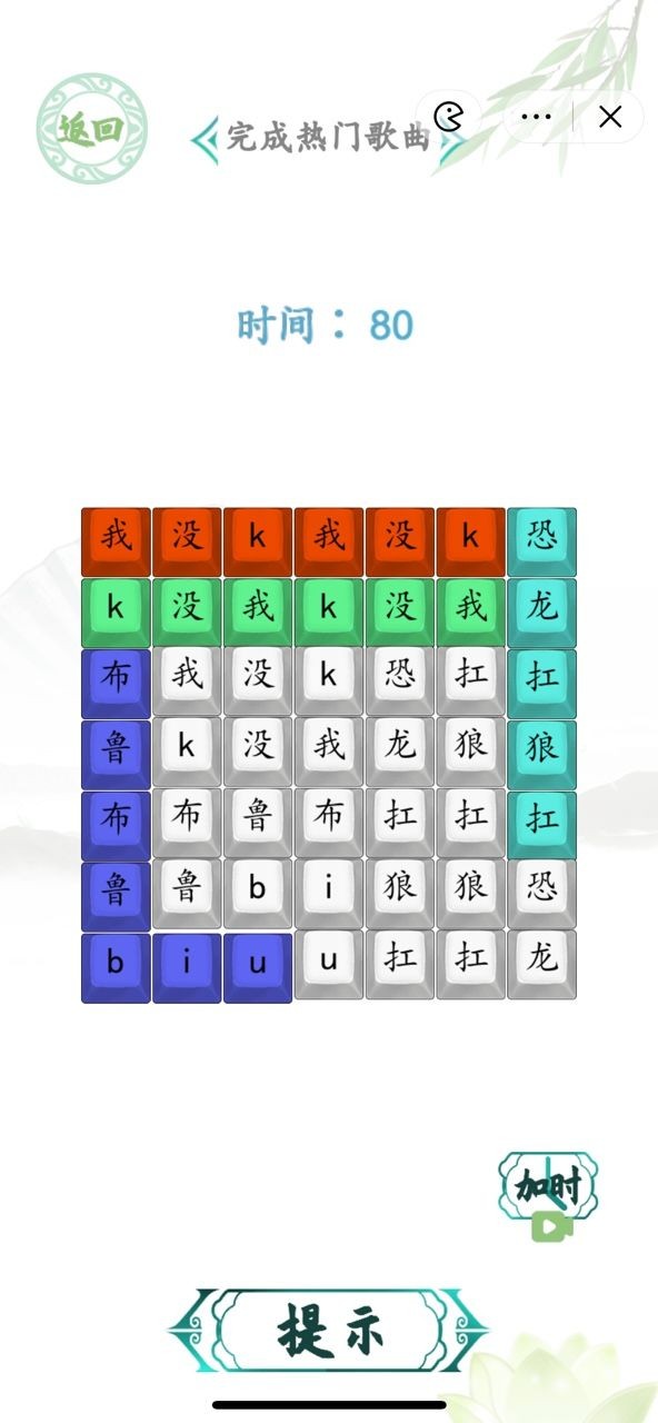 汉字找茬王小丸子扛狼歌曲答案一览: