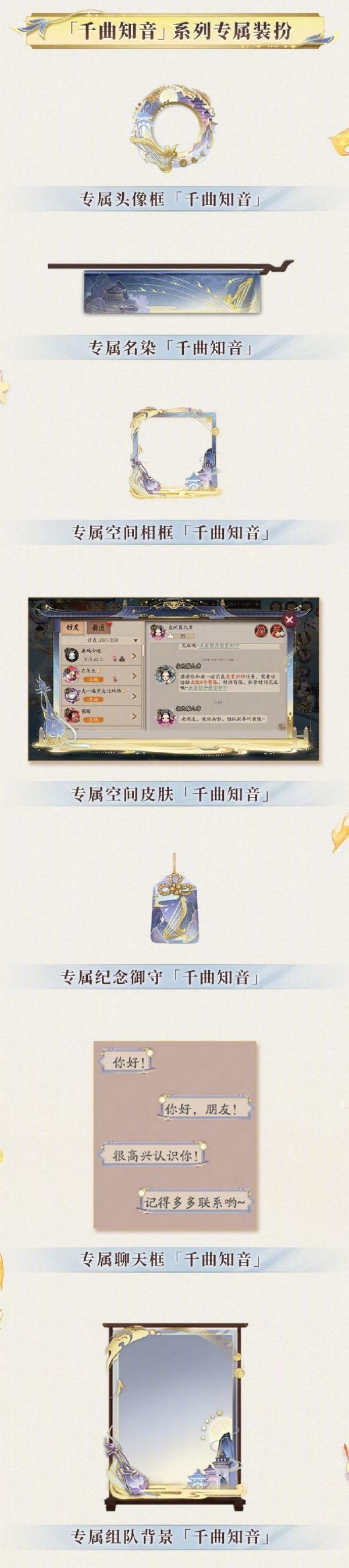 包含全新专属头像框、名染、空间相框、空间皮肤、纪念御守、专属聊天框及组队背景