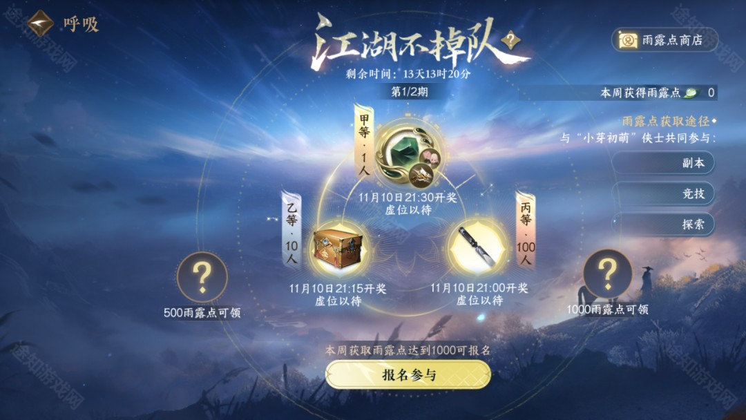 每周获得500、1000雨露点时