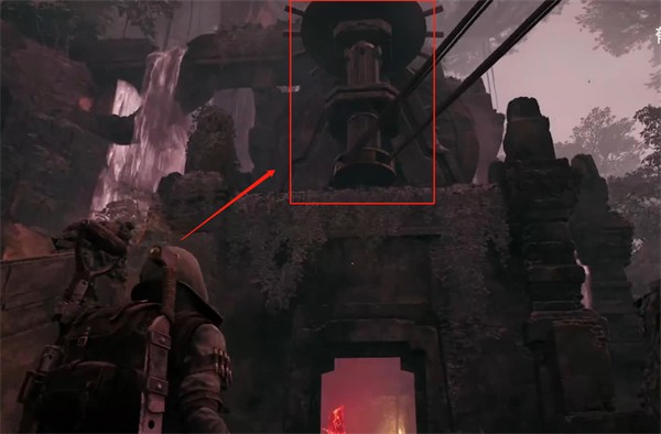 1、首先来到入口的柱子处,我们需要打开这个柱子的开关使其转动。