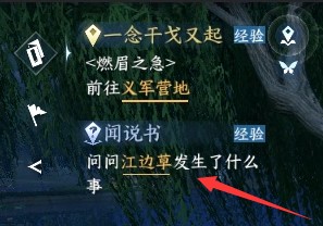 然后前往NPC江边草(980.1053)位置,逛一逛可以触发【说书探索】。