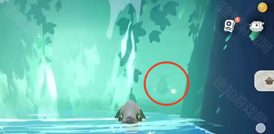 3、在瀑布后方可以看到发光的晶体