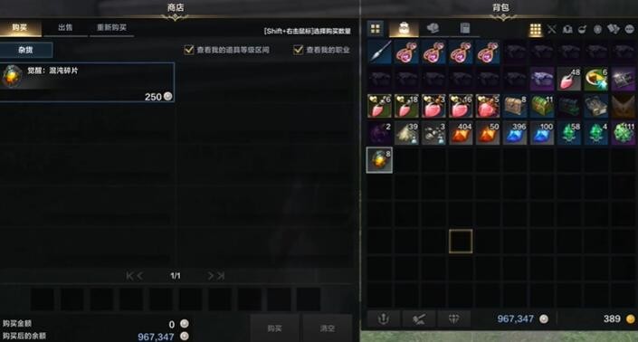 3、和杂货店商人进行交易,购买足够量的混沌碎片,最好购买几百个混沌碎片在副本中的消耗比较大。