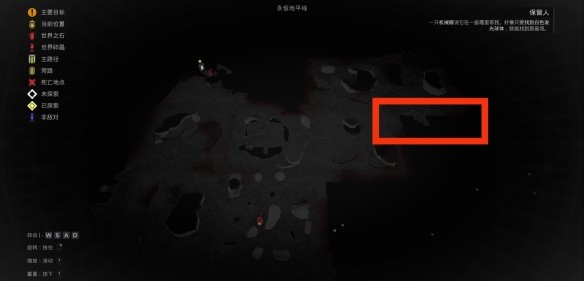 顺带一提,开启探索者搜索技能后,只需要在地图边缘寻找一个人型的尸体就行,这个尸体上有工程师套装,这个职业物品就在套装旁边,由一个黄色的光柱标注出来了。