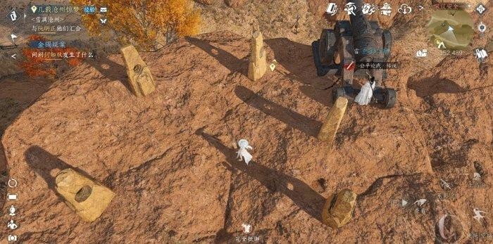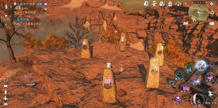 首先技能栏装配探索技能【风起云涌】,随便对着一个石头使用后,每块石头上会出现对应的字~