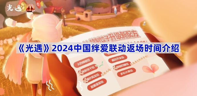 光遇中国绊爱礼包会返场吗?近日光遇官方宣布中国绊爱联动将再次返场,返场期间以往售卖的礼包将再次上架。那么2024年中国绊爱联动多久会返场呢?感兴趣的小伙伴接下来就和小编一起看看《光遇》2024中国绊爱联动返场时间介绍吧。