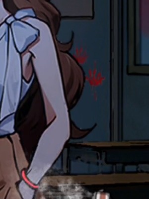 5、这时教室窗户和门上都出现红色手印,我们要马上离开教室;先用粉笔盒将老师红绳子染成白绳子,接着用抹布将门上的手印擦干净。