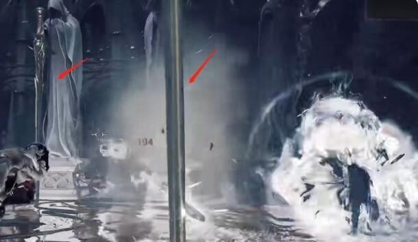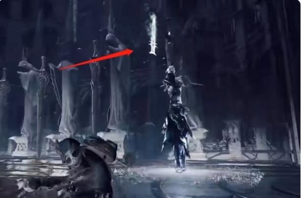 4、打到一定时间后,他会释放无数的白色能量球,只需要玩家躲到巨剑后面就行。