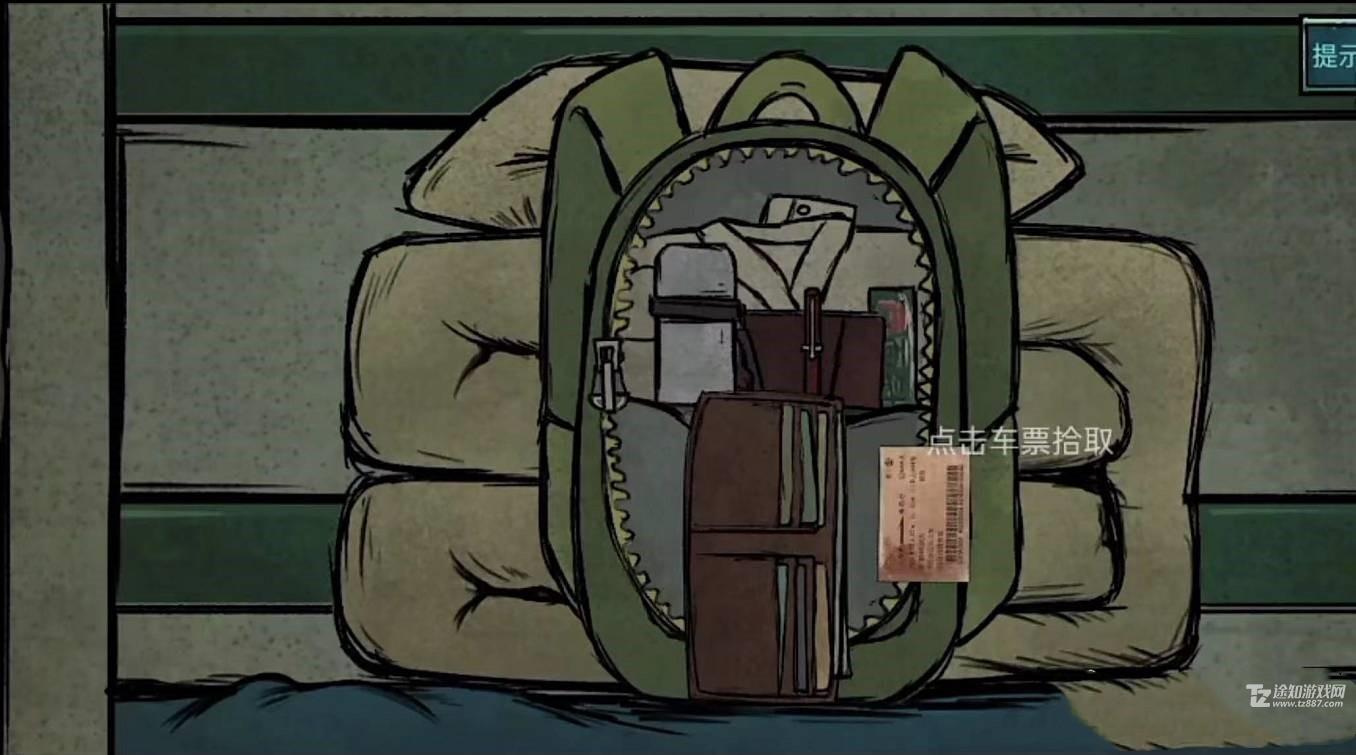 3、到最右边车厢点击背包完成小游戏,找到【火车票】,将【火车票】交给乘务员