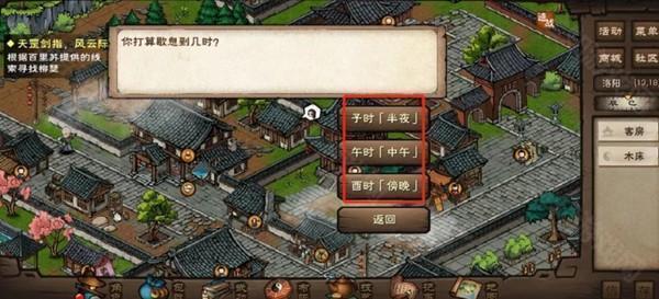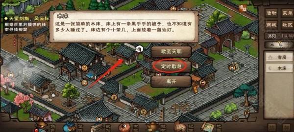 1、首先前往客栈,点击【定时歇息】,选择子时(半夜)。