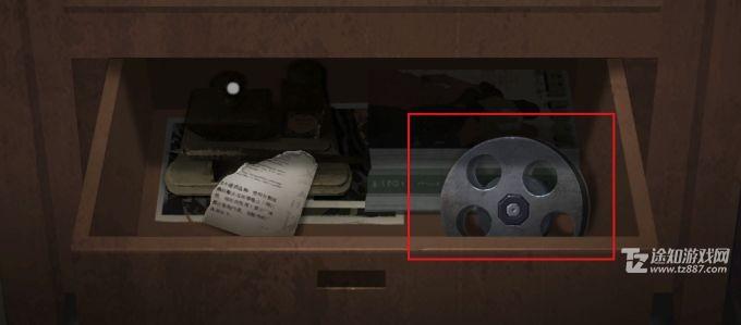 4、从房间矮柜子第二层抽屉里拿出放映盘,把它安装到放映机上,然后墙上就会出现一朵玫瑰花。