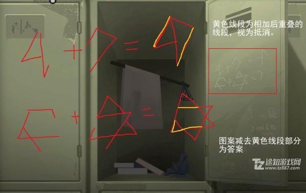 6、捡起地上的口红,按照公式的规律推理,用口红在镜子上画出正确的图案。